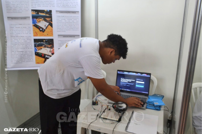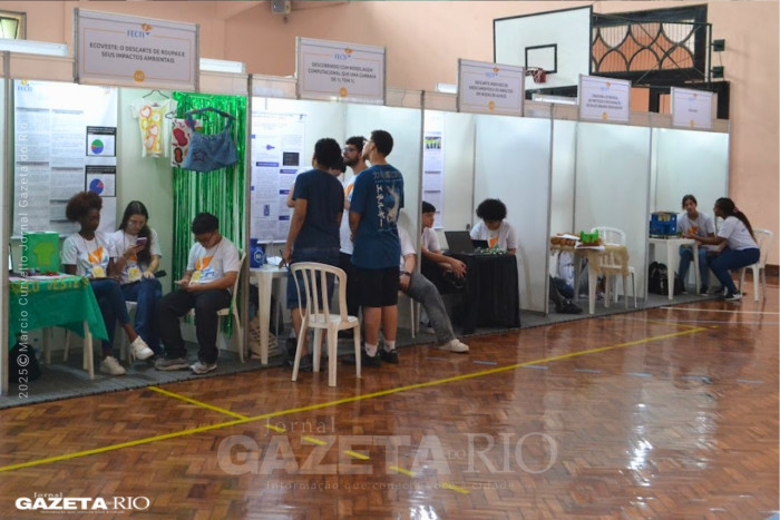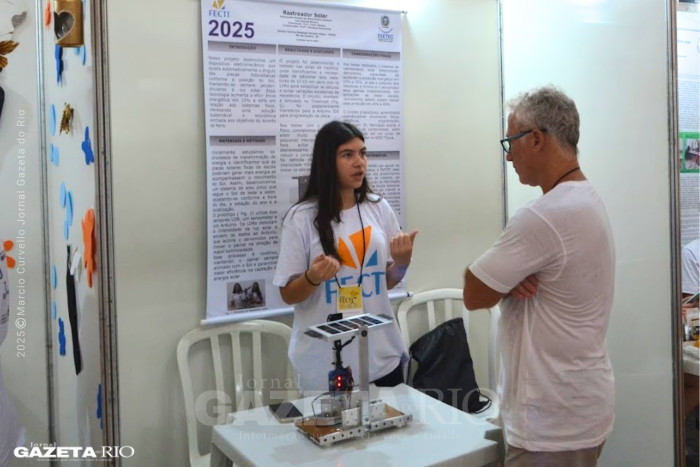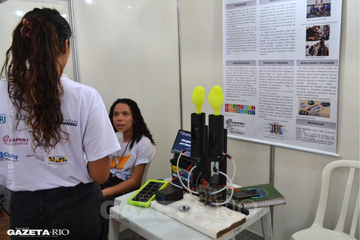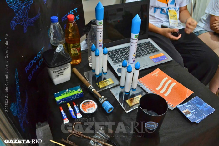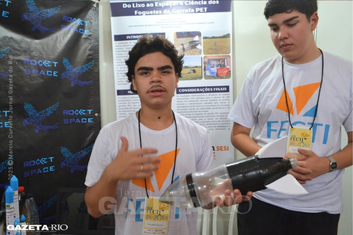 Ao longo da programação, o Jornal Gazeta do Rio percorreu os estandes da feira e conversou com estudantes e orientadores sobre os projetos apresentados. Entre os expositores estava o trabalho “Do Lixo ao Espaço: a Ciência dos Foguetes de Garrafa PET”, desenvolvido por alunos da Escola Firjan SESI Tijuca. O projeto, apresentado por João Pedro Xavier de OliveiraNicolas Benedito de Sousa Brito e Rafaela Vieira Emerick de Carvalho, sob orientação da professora Beatriz Santos Silva, utilizou materiais recicláveis para demonstrar conceitos de física e engenharia aplicados à propulsão.