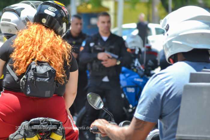 Policiais Militares atentos a grande circulação de veículos que circulam pelo bairro. Foto: Marcio Curvello | Jornal Gazeta do Rio