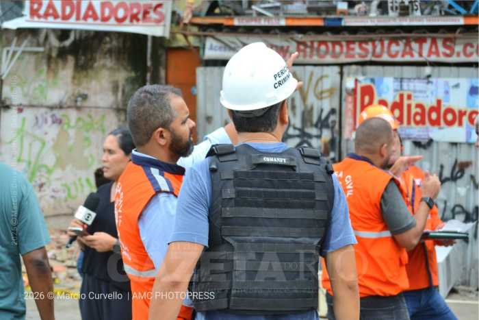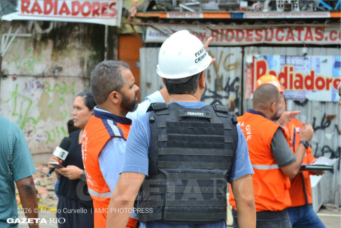 Um perito criminal da Polícia Civil do Estado do Rio de Janeiro também esteve no local e realizou perícia técnica na área do desabamento, procedimento necessário para apuração das circunstâncias do colapso da edificação.