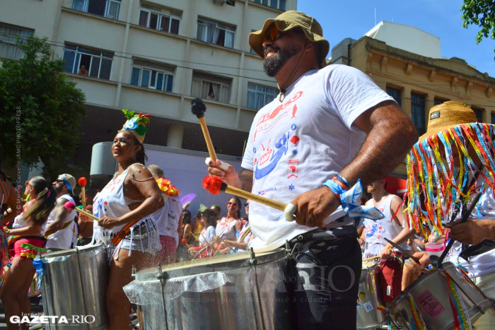 Com quase 20 anos de trajetória, bloco reuniu cerca de 280 ritmistas neste sábado (14), misturou samba, pop e funk e prestou homenagem à ritmista Danielle Borges